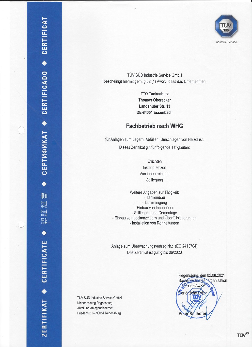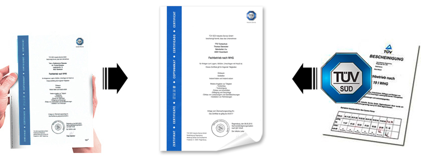 Als Fachbetrieb nach § 19 l WHG bescheinigt uns der TÜV SÜD in regelmäßigen Abständen die Ausführung unserer Tätigkeiten nach festgelegten Richtlinien.